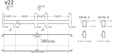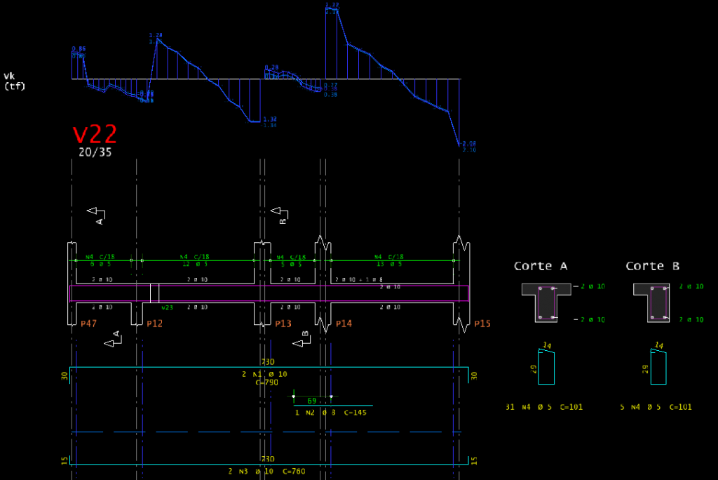 O dimensionamento dos estribos em vigas de concreto armado é feito partir de um princípio conhecido como treliça de Mörsch e leva em conta parâmetros como as dimensões da seção transversal do elemento estrutural, o esforço cortante solicitante em cada trecho, a resistência a tração e compressão do concreto e a tensão de escoamento do aço. Os resultados são obtidos normalmente na unidade de cm²/m e a solução é ajustada pela bitola da barra de aço e pelo espaçamento entre os estribos.