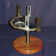 Algum tempo depois, surge o primeiro equipamento “óptico-mecânico” o qual consistia de uma adaptação do Grafômetro, no qual foi introduzido uma luneta, assim, agora era possível além de medir ângulos horizontais, medir ângulos verticais, isso porque tornou-se viável inclinar o semicírculo graduado até a posição de um plano vertical. A Figura 6 retrata este instrumento.