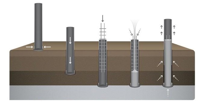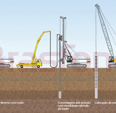 Adaptação a diferentes profundidades e diâmetros: Como o concreto é moldado no local, as estacas podem ser adaptadas para diferentes profundidades e dimensões, conforme a necessidade do projeto;