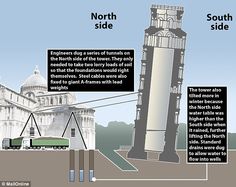 Bem, para desvendarmos esse mistério, é preciso retornarmos ao passado…Em 1173 inicia-se a construção da Torre de Pisa, o prédio em questão serviria de abrigo para os sinos da catedral de Pisa. A obra durou 200 anos e foi executada em três etapas. Durante a primeira fase (1173 – 1778), com apenas três andares construídos, a torre apresentou uma leve inclinação para norte, é então que se percebe que o solo localizado abaixo da fundação não era consolidado suficientemente. Devido a guerras e batalhas, a construção foi paralisada e é graças a essa pausa que foi possível retomar a obra em 1272, pois foi este período de quase um século que garantiu que o solo adquirisse resistência suficiente para suportar as cargas atuantes. Inicia-se então a execução da segunda etapa, quando são construídos mais quatro andares, neste momento, os engenheiros e arquitetos buscavam uma solução pra o problema da inclinação do torre, para isto construíram andares com um lado mais alto que o outro, porém isso só fez a Torre inclinar-se em uma outra direção, agora para sul. Em 1284 a construção foi novamente paralisado por motivos bélicos. Em 1319, o sétimo andar é concluído e o campanário em 1372, com seus sete sinos.