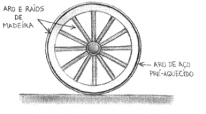 Um bom exemplo desse sistema é a roda de carroça de madeira, isso mesmo!