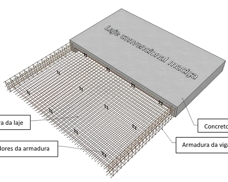 A laje maciça é uma das mais tradicionais e utilizadas na construção civil. É composta por uma camada única de concreto armado, moldada in loco a partir do lançamento de concreto fresco sobre as formas.