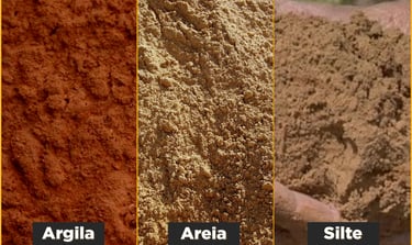 Podemos, de forma genérica, dividir os solos em três tipos: argilosos, arenosos e siltosos. Claro que na prática o que existe, são combinações desses três tipos de partículas. Talvez colocando assim fique confuso, mas explicar melhor: